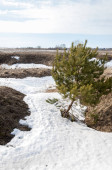 Spring Brook. tekstura wody powstającej wskutek topnienia lodu w brooks wiosna w słoneczny dzień. Rzeka creek stream. Wiosną topnienia lodu na rzece.