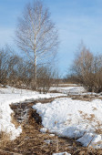 Spring Brook. tekstura wody powstającej wskutek topnienia lodu w brooks wiosna w słoneczny dzień. Rzeka creek stream. Wiosną topnienia lodu na rzece.