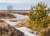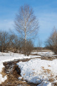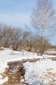 Las sosnowy na wiosnę. Rzeka lodu. sezon wiosna. wiosna, wiosna, springtide, prime. sezon po zimie i przed latem, w których roślinność zaczyna się pojawiać,