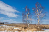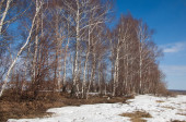 Brzozowy las, wczesną wiosną. Wczesną wiosną lasu. pierwsze ciepłe dni