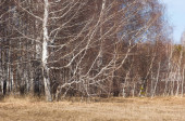 Brzozowy las, wczesną wiosną. Wczesną wiosną lasu. pierwsze ciepłe dni