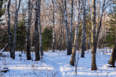 Brzozowy las, wczesną wiosną. Wczesną wiosną lasu. pierwsze ciepłe dni