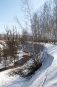 Brzozowy las, wczesną wiosną. Wczesną wiosną lasu. pierwsze ciepłe dni