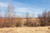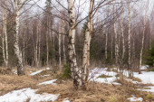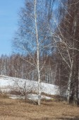 Brzozowy las, wczesną wiosną. Wczesną wiosną lasu. pierwsze ciepłe dni