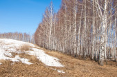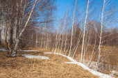 Brzozowy las, wczesną wiosną. Wczesną wiosną lasu. pierwsze ciepłe dni
