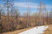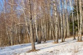 Brzozowy las, wczesną wiosną. Wczesną wiosną lasu. pierwsze ciepłe dni