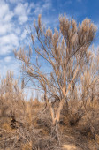 wiosną stepu. Przyroda budzi się po zimie. ostatni rok trawa z drzew na pustyni