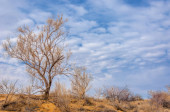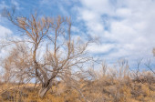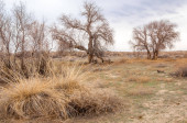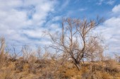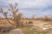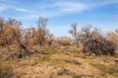 wiosną stepu. Przyroda budzi się po zimie. ostatni rok trawa z drzew na pustyni