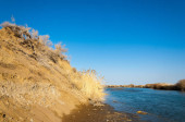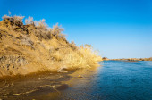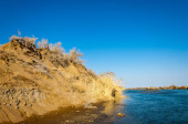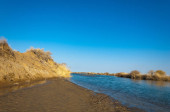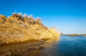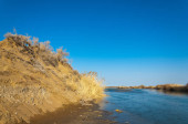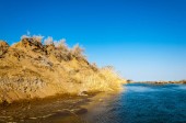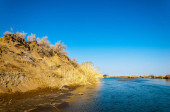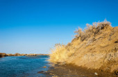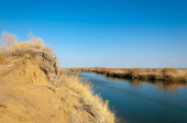 rzeki w stepie wiosna. rzeki porastają trzciny. woda jest czysta emerald