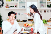 Zdjęcie "Młoda para gotowanie jedzenie w kuchni" może być wykorzystywane do celów osobistych i komercyjnych zgodnie z warunkami zakupionej licencji Royalty-free. Obraz jest dostępny do pobrania w jakości wysokiej rozdzielczości do 5760x3840.