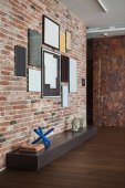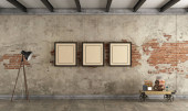 Stare drewniane klatki piersiowej w mieszkaniu na poddaszu strych. Szary mur. Nowoczesne, jasne poddasze Apartament.