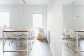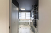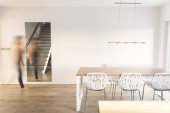 Zdjęcie "Nowoczesna sala i widok na salon z szary mur z pustej ramki biały. Nowoczesne, jasne poddasze Apartament." może być wykorzystywane do celów osobistych i komercyjnych zgodnie z warunkami zakupionej licencji Royalty-free. Obraz jest dostępny do pobrania w jakości wysokiej rozdzielczości do 5760x3840.