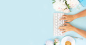 Zdjęcie "Obszar roboczy płasko świeckich domowego biura na niebieski" może być wykorzystywane do celów osobistych i komercyjnych zgodnie z warunkami zakupionej licencji Royalty-free. Obraz jest dostępny do pobrania w jakości wysokiej rozdzielczości do 5760x3840.