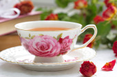 Czas na herbatę. Filiżanka herbaty do wypoczynku w okresie letnim