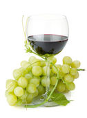 Zielony winogron z plusk wody do szklanki. Białe tło