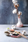 Zdjęcie "Azjatycka sandwich na parze gua bao bułeczki z wieprzowina brzuch, Zieloni i warzywa serwowane w płytki ceramiczne nad serweta lniana. Stylu azjatyckim szybkiej kolacji. Układ płaski, miejsca" może być wykorzystywane do celów osobistych i komercyjnych zgodnie z warunkami zakupionej licencji Royalty-free. Obraz jest dostępny do pobrania w jakości wysokiej rozdzielczości do 5760x3840.