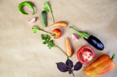 Widok z góry świeże surowe warzywa zdrowy na białym tle