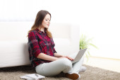 Zdjęcie "Szczęśliwa kobieta siedzi na kanapie z laptopem" może być wykorzystywane do celów osobistych i komercyjnych zgodnie z warunkami zakupionej licencji Royalty-free. Obraz jest dostępny do pobrania w jakości wysokiej rozdzielczości do 5760x3840.