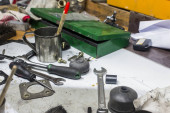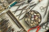 narzędzia w warsztacie, Retro, stylizowane stare narzędzia na stół