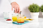 Zdjęcie "Krok po kroku. Przygotowując Kentucky pocałunek wiejski biały koktajl ze świeżych truskawek organiczne." może być wykorzystywane do celów osobistych i komercyjnych zgodnie z warunkami zakupionej licencji Royalty-free. Obraz jest dostępny do pobrania w jakości wysokiej rozdzielczości do 5760x3840.