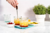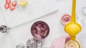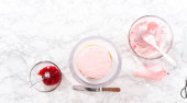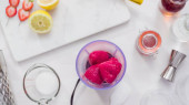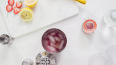 Krok po kroku. Przygotowując Kentucky pocałunek wiejski biały koktajl ze świeżych truskawek organiczne.
