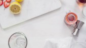 Krok po kroku. Przygotowując Kentucky pocałunek wiejski biały koktajl ze świeżych truskawek organiczne.