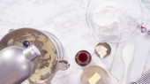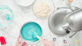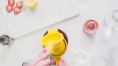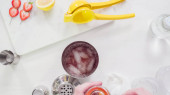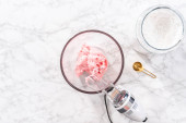 Krok po kroku. Przygotowując Kentucky pocałunek wiejski biały koktajl ze świeżych truskawek organiczne.