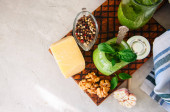 Zdrowa Sałatka ze świeżych warzyw w podejmowaniu. Ręce kobiety cięcia koperek na płycie. Gotowania krok po kroku.
