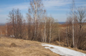 Zdjęcie "Wiosenny krajobraz. Ostatni śnieg na polu wiosną. pagórkowaty teren. drzewa bez liści. ciepłe dni są pierwszym" może być wykorzystywane do celów osobistych i komercyjnych zgodnie z warunkami zakupionej licencji Royalty-free. Obraz jest dostępny do pobrania w jakości wysokiej rozdzielczości do 5760x3840.