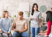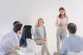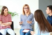 Rodzina dopingowanie się kobieta na sesji terapii przez kobiece doradcy w biurze