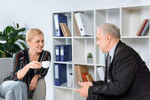 uśmiechnięty mężczyzna rozmawia z psychiatra kobiece a ona pisania w Schowka pakietu office