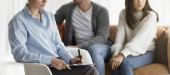Widok z tyłu kobiece psychiatry rozmawia na kilka sesji terapii w biurze