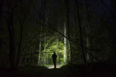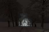 Zdjęcie "Człowiek stojący na zewnątrz w nocy w drzewo alley świeci z latarką. Piękne ciemne snowy zimowych nocy." może być wykorzystywane do celów osobistych i komercyjnych zgodnie z warunkami zakupionej licencji Royalty-free. Obraz jest dostępny do pobrania w jakości wysokiej rozdzielczości do 5760x3840.