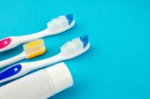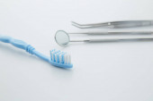Instrumenty stomatologiczne. Lusterko dentystyczne, sonda hak i szczoteczkę do zębów na niebiesko