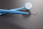 Instrumenty stomatologiczne. Dental lustro i sondy hak na niebiesko