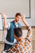 przystojny, Młoda Nauczycielka, Dokonywanie prezentacji dla grupy studentów College