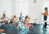 Zdjęcie "Widok z tyłu młodych studentów klaskanie prowadzącego po prezentacji w college" może być wykorzystywane do celów osobistych i komercyjnych zgodnie z warunkami zakupionej licencji Royalty-free. Obraz jest dostępny do pobrania w jakości wysokiej rozdzielczości do 5760x3840.