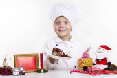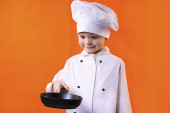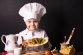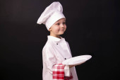 Szef kuchni zabawny chłopak gotowane sushi na talerzu