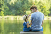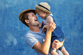 Zdjęcie "Ojcem i córką przytulanie na niebieskim tle." może być wykorzystywane do celów osobistych i komercyjnych zgodnie z warunkami zakupionej licencji Royalty-free. Obraz jest dostępny do pobrania w jakości wysokiej rozdzielczości do 5760x3840.