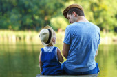 Zdjęcie "Tata i malutka dziewczynka w ogrodniczki relaks nad rzeką. Widok z tyłu, miejsce." może być wykorzystywane do celów osobistych i komercyjnych zgodnie z warunkami zakupionej licencji Royalty-free. Obraz jest dostępny do pobrania w jakości wysokiej rozdzielczości do 5760x3840.