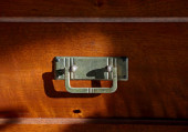 Cień klucza w otworze na drzwi drewniane. Ladne tekstury, kształty i szczegóły. Spokojne, ciche kolorowe tło.