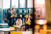 myślący badacz Azji dziewczyna pisanie na tablicy podczas lekcji