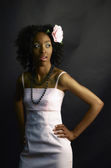 Stylowe african american kobieta stwarzane na łuku tonnel w słoneczny dzień.