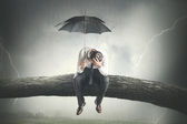 silny wiatr zrobić parasol latać surrealistyczne biznes koncepcja pecha