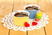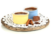 budyń czekoladowy w miski do pieczenia, na białym tle