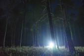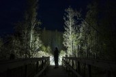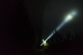 Zdjęcie "Człowiek stojący na zewnątrz w nocy w drzewo alley świeci z latarką. Piękne ciemne snowy zimowych nocy." może być wykorzystywane do celów osobistych i komercyjnych zgodnie z warunkami zakupionej licencji Royalty-free. Obraz jest dostępny do pobrania w jakości wysokiej rozdzielczości do 5760x3840.