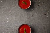 Stylizacja jedzenie pomidor smaczny chleb i zupę lasek na stół szary