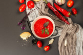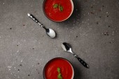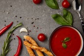 Zdjęcie "płaskie ukształtowanie pomidor smaczny zupy i chleba wbija na stół szary" może być wykorzystywane do celów osobistych i komercyjnych zgodnie z warunkami zakupionej licencji Royalty-free. Obraz jest dostępny do pobrania w jakości wysokiej rozdzielczości do 5760x3840.