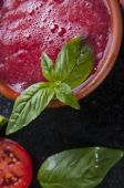 Zupa pomidorowa gotowane, Red Hot chili peppers, bazylia i pomidorów na stole