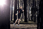Męski bokser średnim wieku Kaukaska szkolenia poza w przyrodzie
